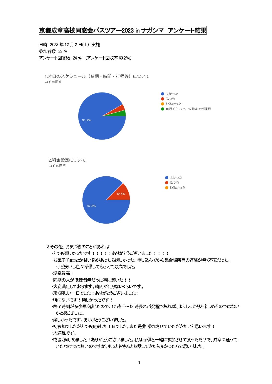 ニュース トップページニュースバスツアー アンケート結果のご報告 バスツアー アンケート結果のご報告 2023年12月7日 「京都成章高校同窓会バスツアー2023 in ナガシマスパーランド」のアンケートの結果がまとまりましたのでご報告いたします。 ご回答いただきまして、誠にありがとうございました。 今後のイベントに活かしていきたいと思います。 引き続き、同窓会の活動にご協力いただきますよう、よろしくお願いします。 Facebook Twitter Google+ はてブ LINE ニュース トップページへ