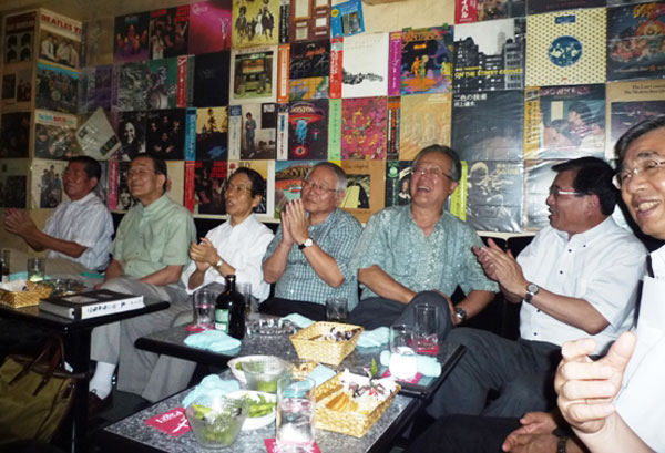 講演の内容の高度な話題から、健康問題、孫の話と和やかに進み、マスターのギター伴奏での熱唱に挑戦するなど、人生を謳歌していることを証明しあっていた。