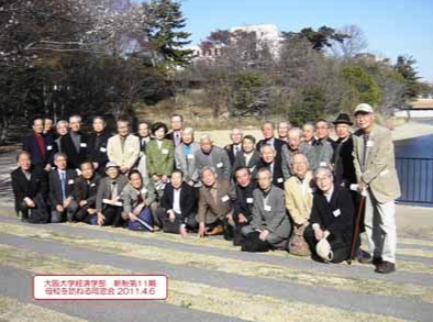 平成23年4月6日、「母校を訪ねる同窓会」と銘打って、新制第11期卒業生33名が穏やかな晴天の下、さくら満開の豊中キャンパスに集合しました。