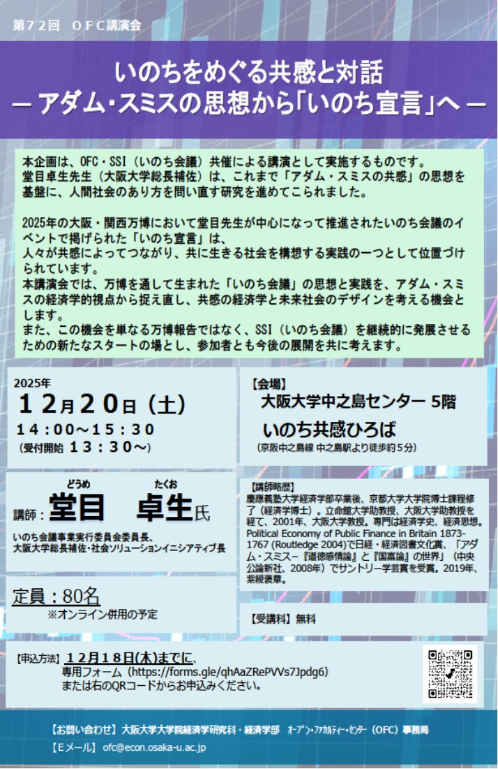 3,演 題 :いのちをめぐる共感と対話 アダム・スミスの思想から「いのち宣言」へ