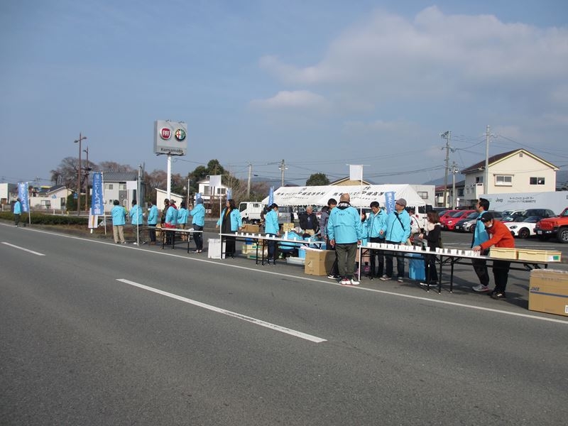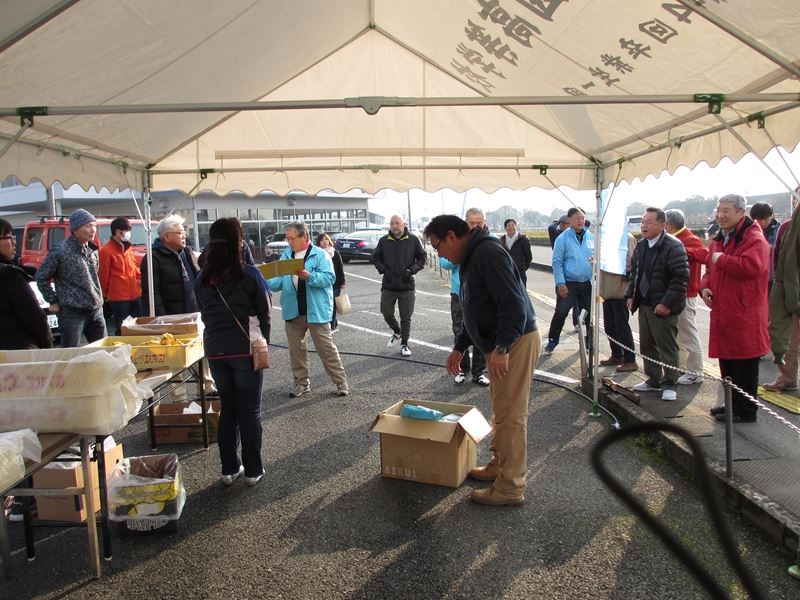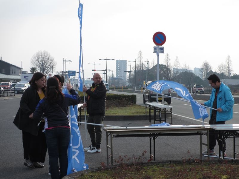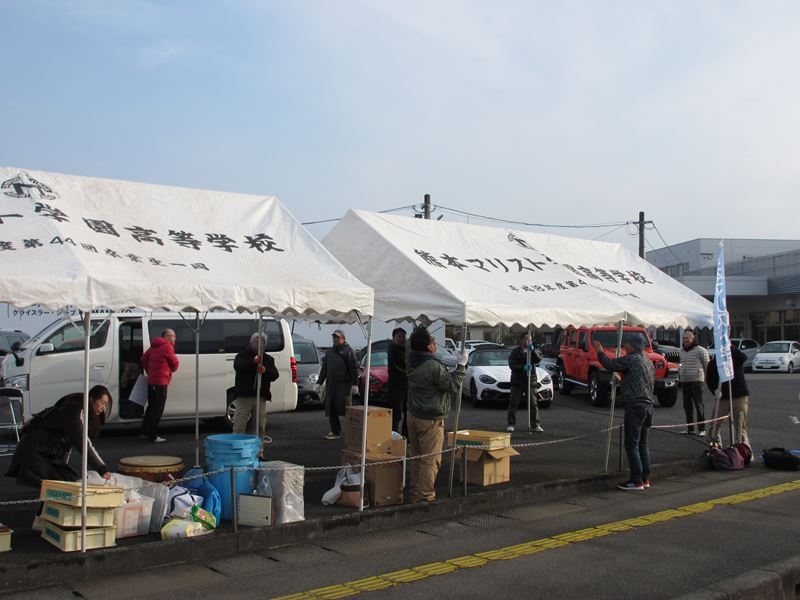 さまの店舗入り口をお借りして早朝よりマリストファミリーが集合し