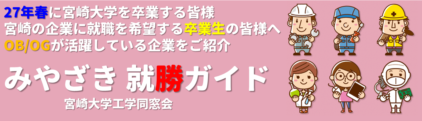 TOPICS 2026年1月20日 【宮崎大学施設環境部】 技術職員採用のご案内 2025年12月10日 みやざき企業説明会開催 2025年11月14日 みやざき就勝ガイドのご紹介 2025年11月10日 みやざき企業説明会の開催 宮崎大学工学部同窓会 〒889-2192 宮崎県宮崎市学園木花台西1-1 What's New 2026/1/20 就活情報 【宮崎大学施設環境部】 技術職員採用のご案内 2025/12/10 イベント告知 みやざき企業説明会開催 2025/12/1 イベント告知 北部九州工学部会開催