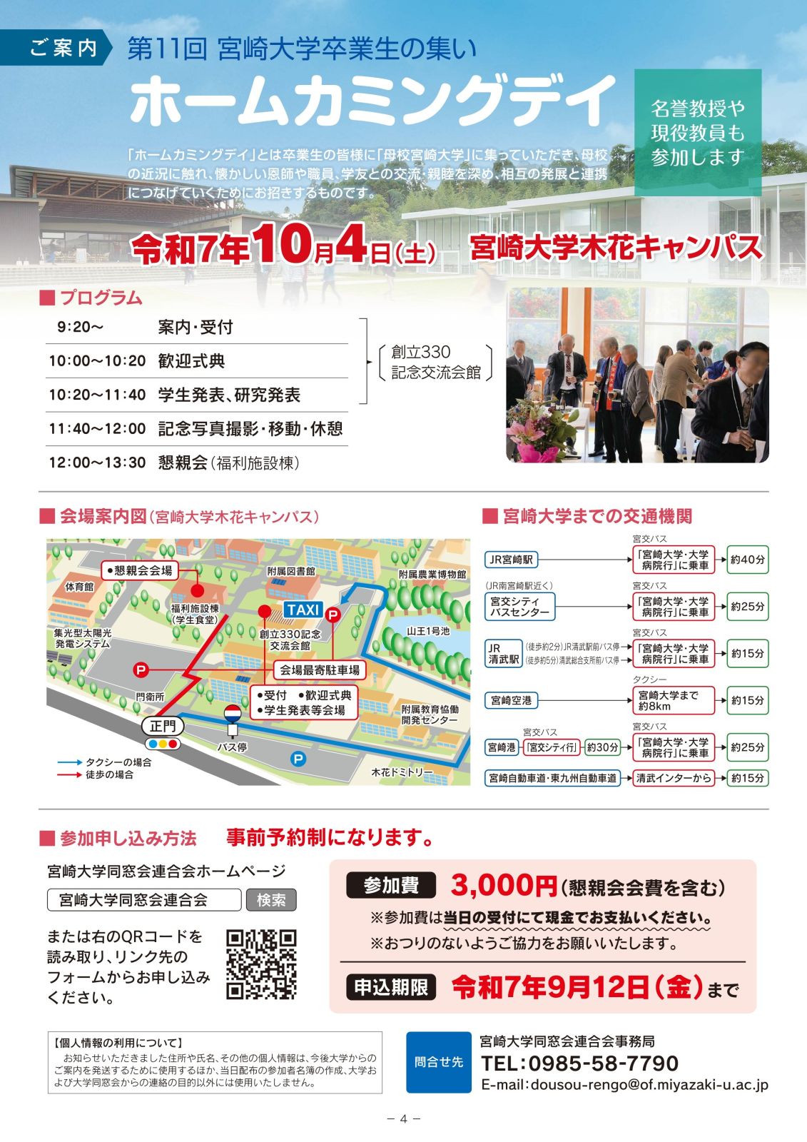 令和7年度の宮崎大学ホームカミングデイの案内です。