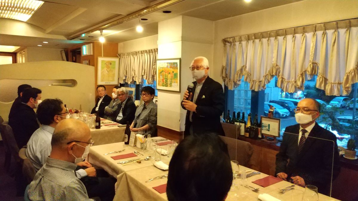 電電会関西支部の敦田会長の司会挨拶の後に同窓会会長の井上さんの挨拶が行われ、その後乾杯を行い