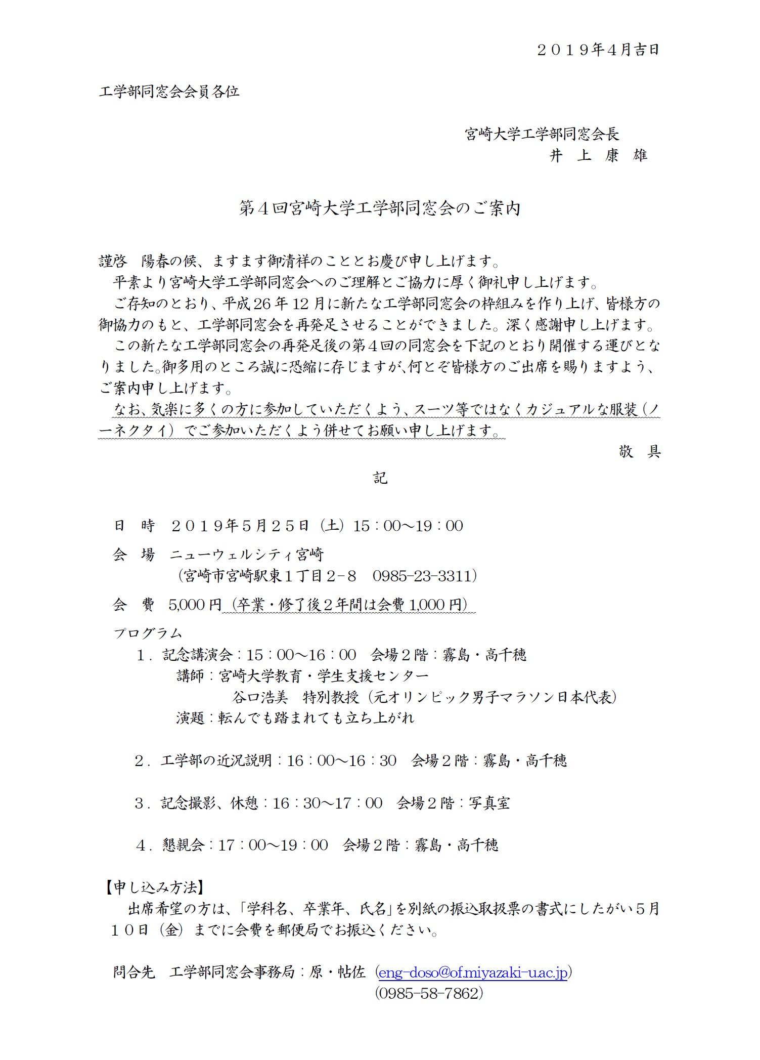 先輩・後輩、同期の皆様と連絡を取り合って頂き、多くの皆様のご参加をお待ちしております。