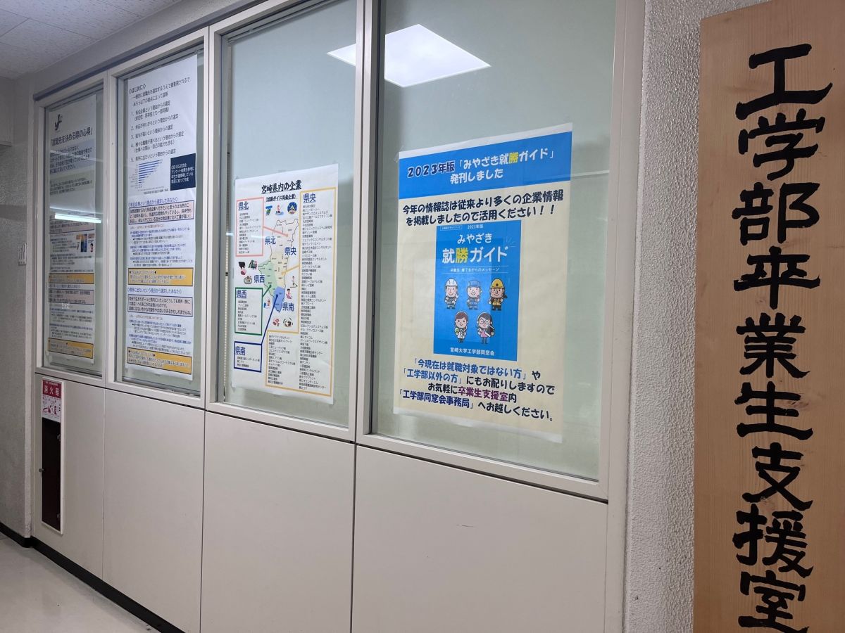 お知らせ トップページ事務局だより卒業生支援室前 の 掲示変更 事務局だより 2023年1月31日 卒業生支援室前 の 掲示変更 卒業生支援室の窓に記載してある情報を更新しました。 以前は就勝ガイド掲載企業の名前だけ掲載していましたが、今回は・・・ 「就職する際に心がけておくこと」と題して、いざ就職する際に頭に入れておくべき内容を4点ほど絞って掲載していますので是非見てみてください。また、県内企業のロケーション含めたリストも掲示しましたので参考にしてみてくださいね。 工学部同窓会事務局 👈絵をクリック お知らせ 事務局だより イベント告知 就活情報