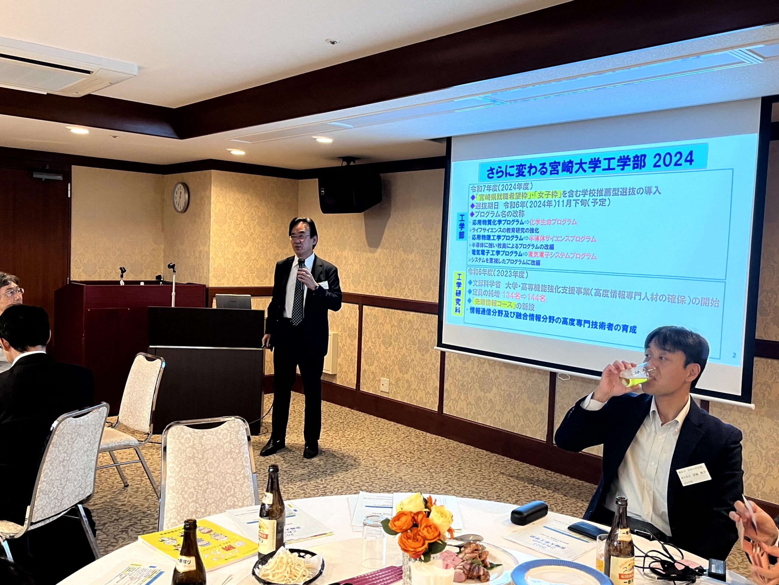 その後、山北会長代理の乾杯の後に、鈴木工学部長から「工学部の近況」のご説明がありました。