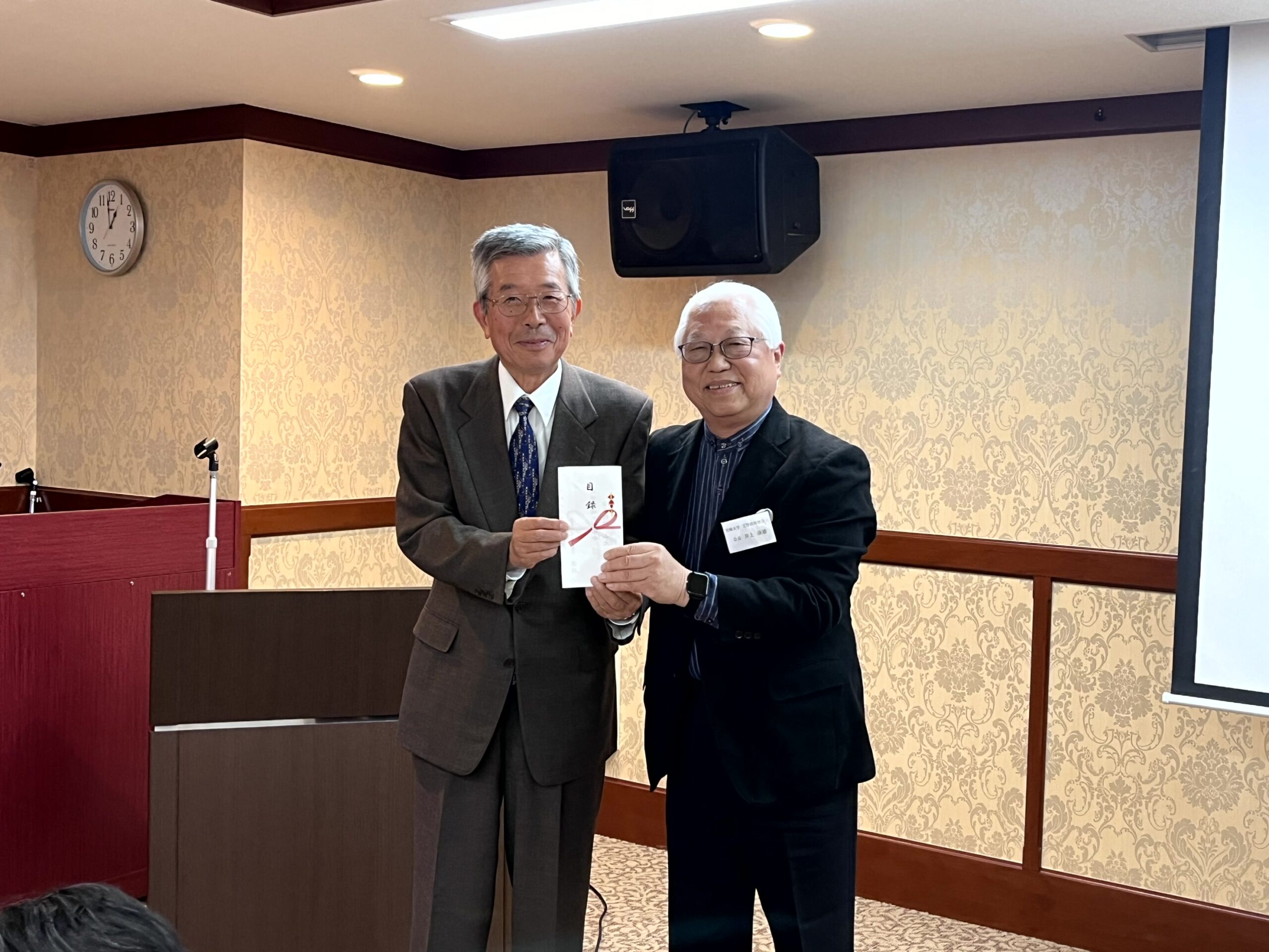 続いてご挨拶をされた井上工学部同窓会会長挨拶の中では、北部九州工学部会の活動支援として支援金の目録贈呈も行われました。