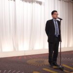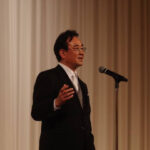 続いて工学部同窓会会長の井上さんが新たに社会人として同窓会メンバーとして仲間になる新卒メンバーに対し、お祝いの言葉を述べられました。