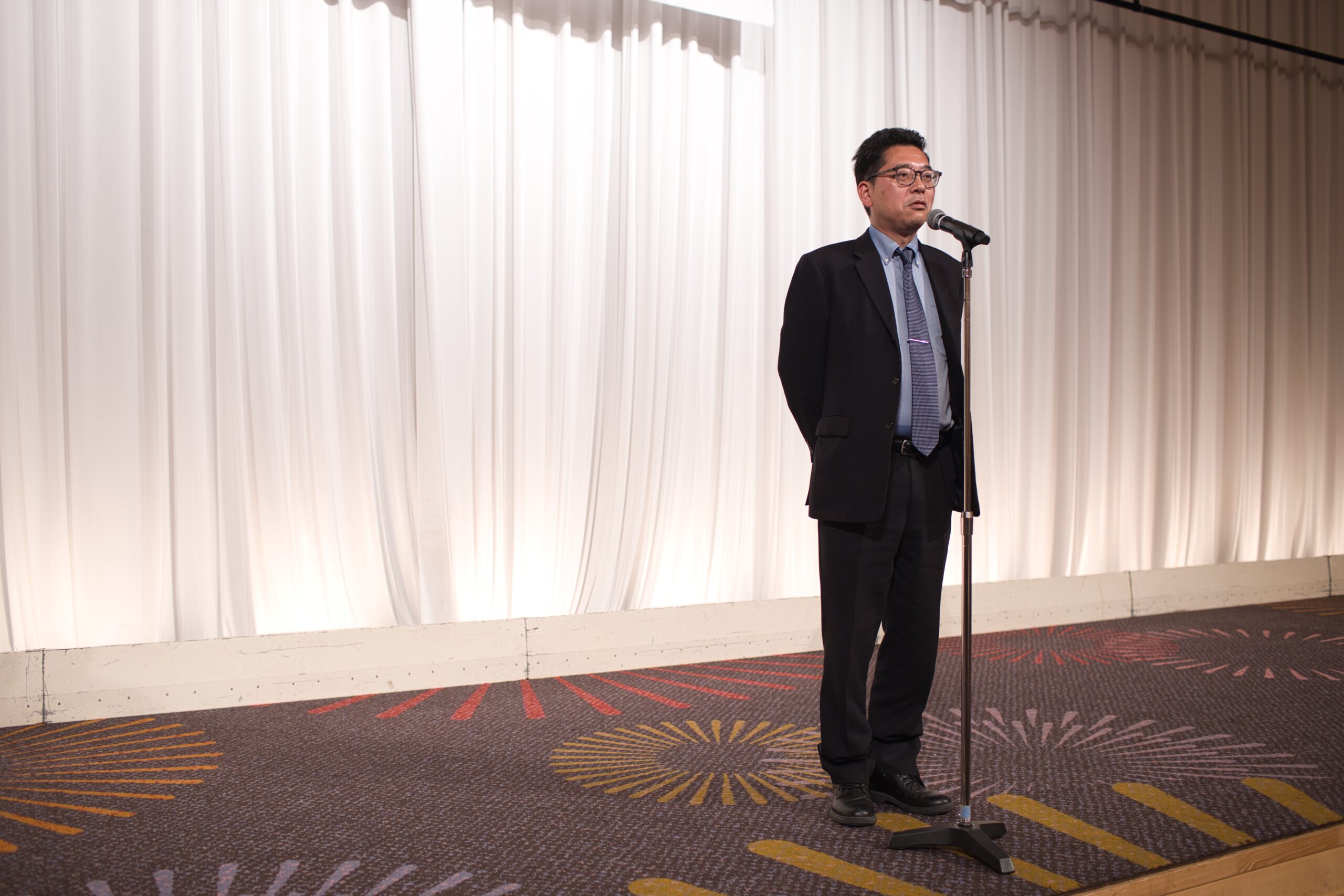 お忙しい中お時間を割いてご列席頂いた鮫島学長にもお祝いのご挨拶をして頂いたのち、乾杯のご発声もしていただきました。