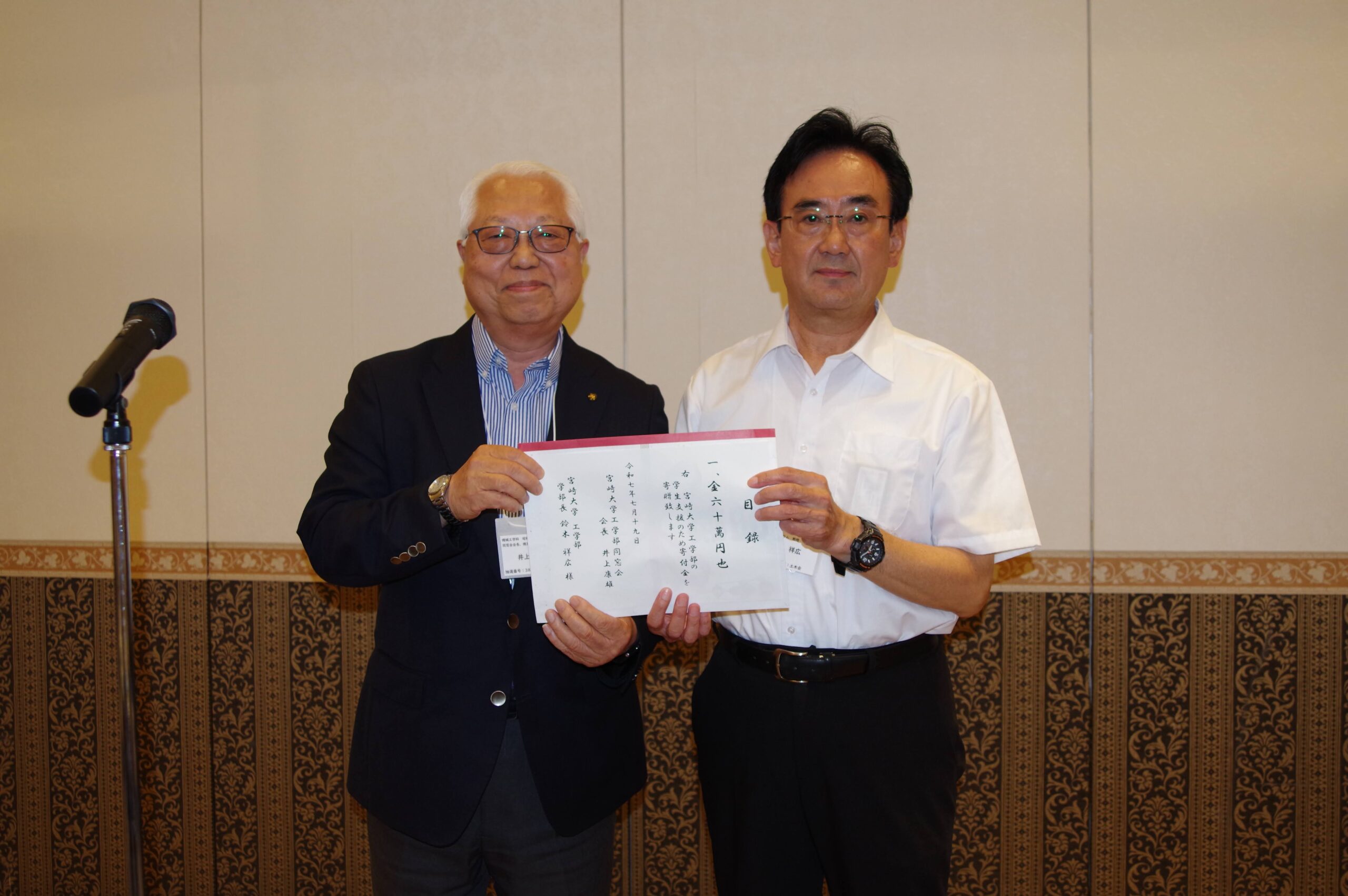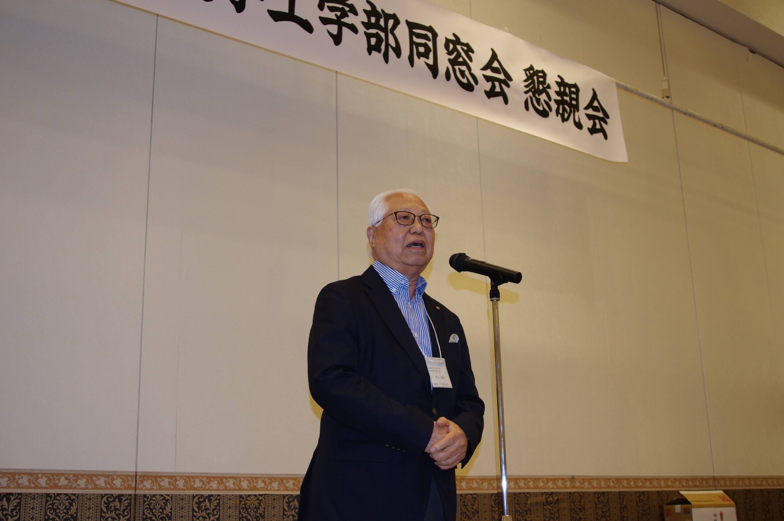 井上会長からの開宴のご挨拶及び工学部へ60万円を学生の支援として寄付をさせて頂いています。