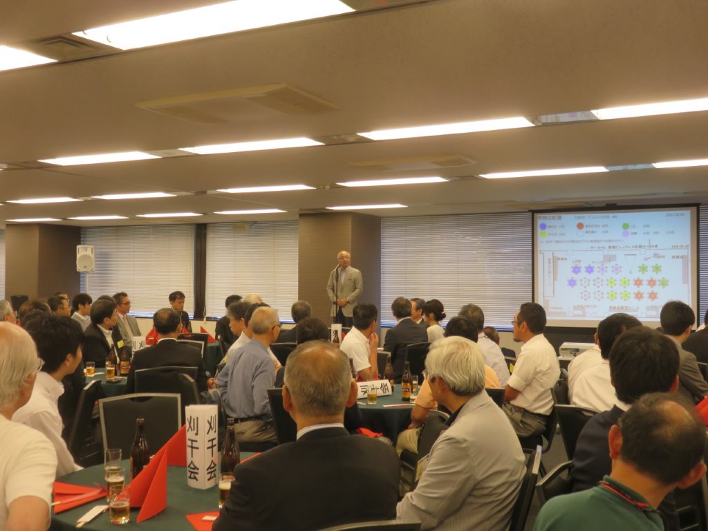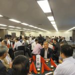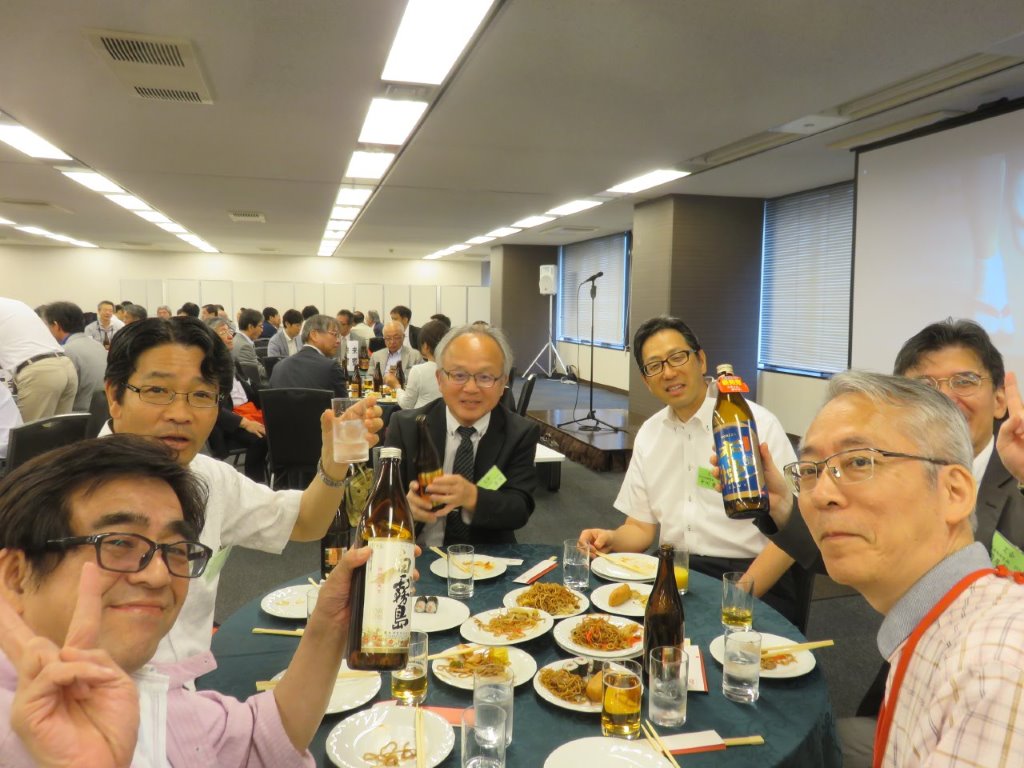 次に電気電子東京支部の竹内 順様の乾杯で懇親会が始まりました。その後、宮崎市商工戦略局永易貞幸局長による「宮崎市の現状紹介」がありました。又、宮崎物産の販売も並行してありました。