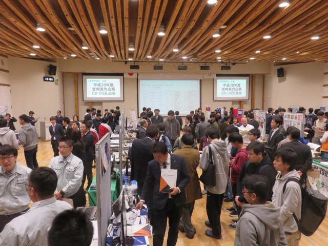 宮崎大学創立330記念交流会館にて参加企業40社、参加学生134名で