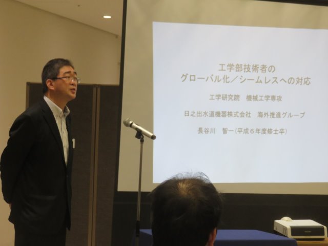 挨拶の中で、井上工学部同窓会長からは同窓会活動の現況報告があり、