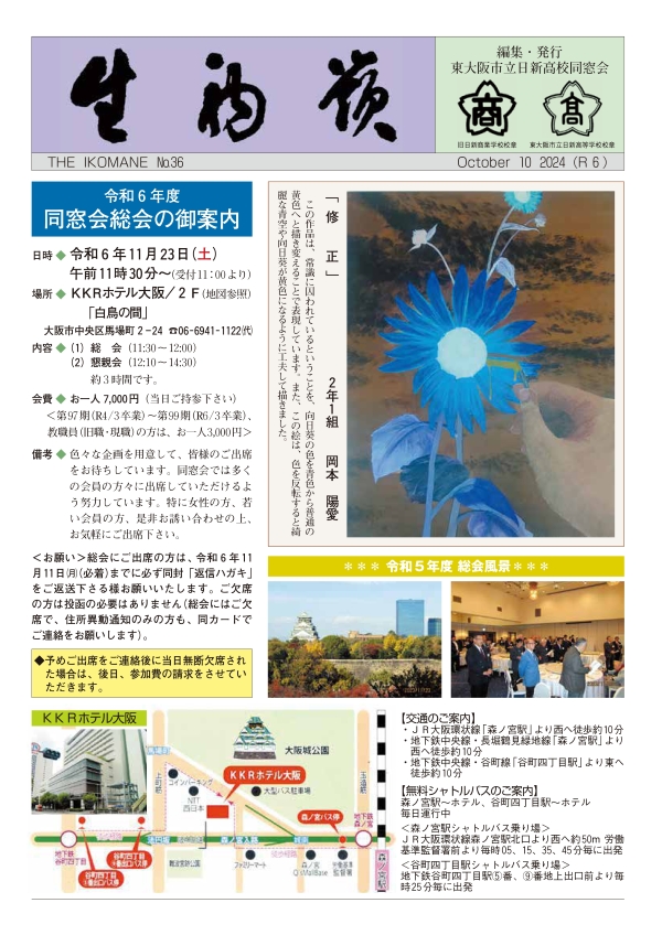 同窓会報 トップページ同窓会報生駒嶺No.36 生駒嶺No.36 2025年10月6日 生駒嶺№36 PDF版2.42MB Facebook X Google+ はてブ LINE 同窓会報 トップページへ