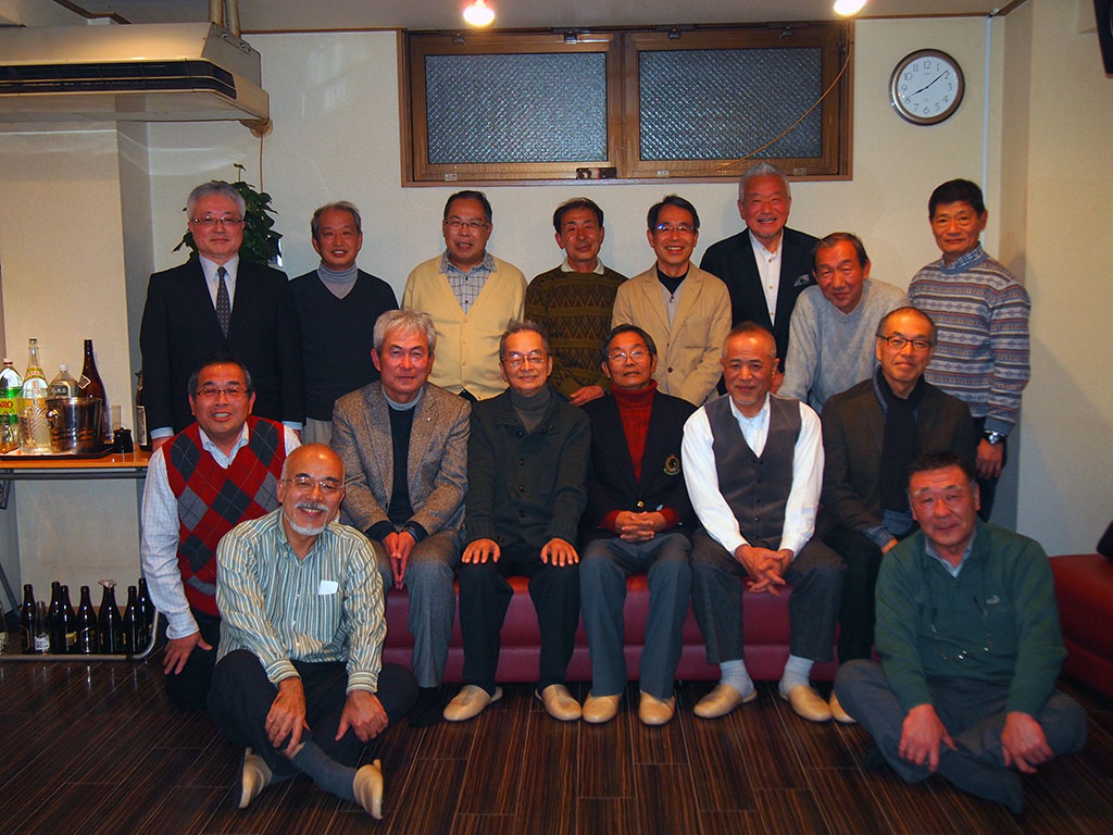 当日は渡部元教諭、遠くは熊本市、宝塚市、袋井市などからも駆けつけてくれた14名の仲間、更に新田野火止サッカー倶楽部会長を含め16名が集いました。中には卒業以来初めて会う者もおり、楽しい会話、酒量共に大いに弾み、あっという間に3時間が過ぎました。