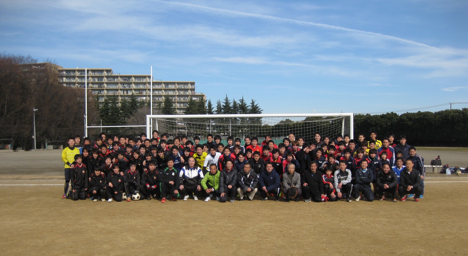 晴天に恵まれる中、母校のグランドに 現役高校生3年生約20人・大学生OB約50人、社会人OB約40人の総勢約110人が集まり ゲームを中心に約1時間、サッカーを思う存分楽しみました。特に今年は、大学生および若手社会人が数多く参加し、活気あふれる初蹴り会となりました。 また、その中で、今年もオーバー70の大先輩が今年もゲームに参加され、あいかわらずの元気はつらつのサッカー小僧ぶりを発揮しておられました。(いつも思うことですが、本当に驚くべき素晴らしいことです。ああなりたいと思います。)今年、参加いただけなかった会員の皆様、箱根駅伝のテレビ観戦もいいかもしれませんが、 是非来年は野火止サッカー倶楽部の「初蹴り会」に参加して下さい。 思った以上の感動がありますよ。