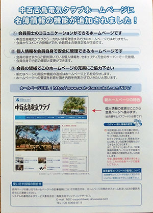 早速、中百舌鳥電気クラブ・ホームページの会員ページにログインしてみて下さい。