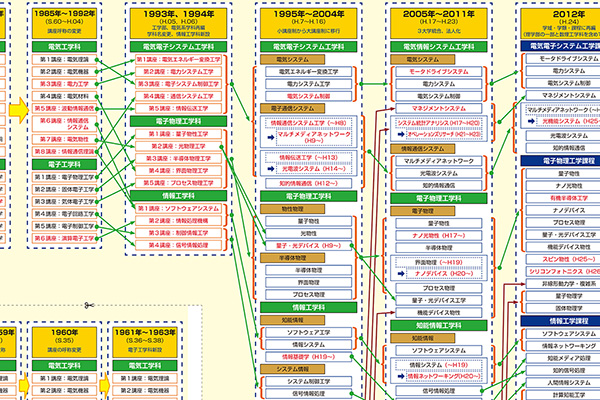 「1995年~2004年」から「2005年~2011年」において、「情報工学科システム制御工学」から「知能情報工学科信号情報処理」への矢印を削除。