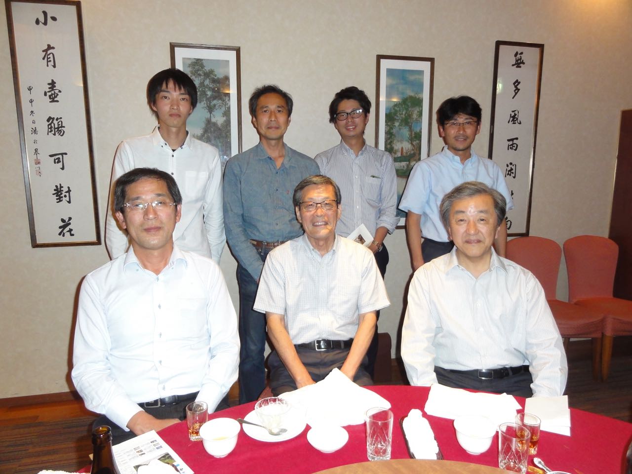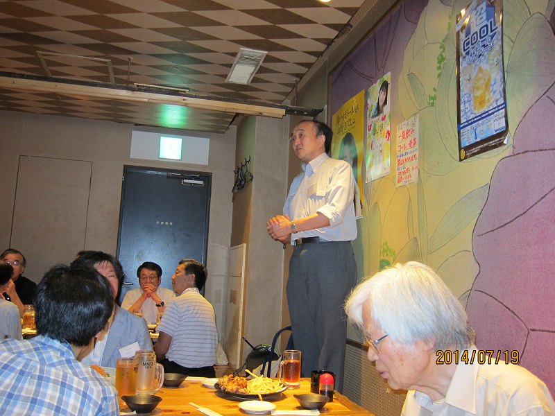 今年は8月30日(土)、あじびる花心梅田店で実施、現役学生8名、先生方4名、OB7名の19名が出席し、70歳台のOBから院生、学部生まで幅広い世代の集まった宴会となりました。