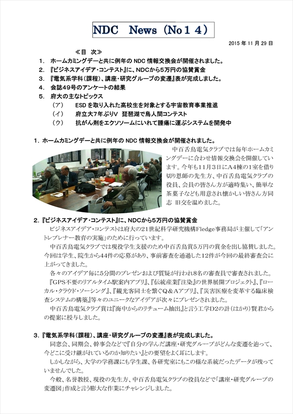 「NDC news 14号」は11月30日に配信されましたので、メルアドを登録頂いている皆さんは既に受信されていることと思います。
