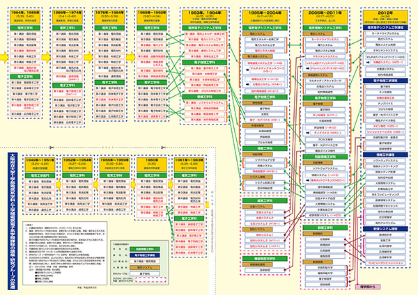 浪速大学・電気工学部門→大阪府立大学への改称→電子工学科の新設→工学部の再編→学域、学域制への移行 などなどの大きな節目を経て、学びの領域、分類、名称などが変化してきています。