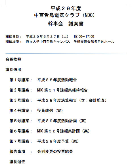 平成29年度の幹事会および懇親会を下記のとおり開催します。