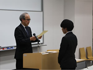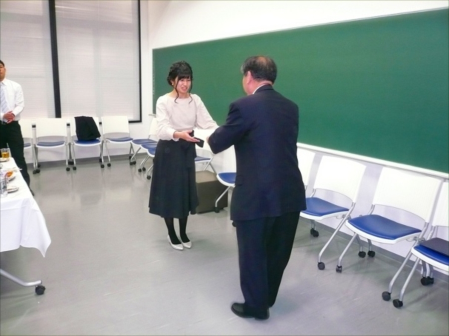 3月24日、大学の学位記授与式に続いて行われた各分野/課程ごとの学位記授与式または祝賀会(記念パーティ)の席上、NDCの役員から表彰状と副賞を贈呈させていただきました。
