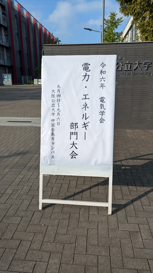 さて、今回の学生コラムでは、私の最近の学生生活について少しお話ししようかと思います。先月9月4日から9月6日にかけて、電気学会の電力・エネルギー部門大会、いわゆるB部門大会が大阪公立大学の中百舌鳥キャンパスで開催されました。開催地になったおかげで、電気電子システム工学分野の学生がバイトとして当日の運営に携わることができたので、それに参加していました。バイトの合間になるので全部というわけにはいきませんでしたが、いろいろなセッションや展示を見ることができました。交通費や宿泊費がかからないおかげで、発表者でもないのに選抜等もなく、気軽に学会に全日参加でき、良い経験となりました。
