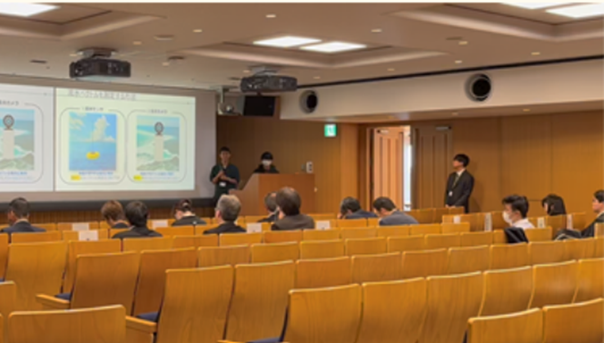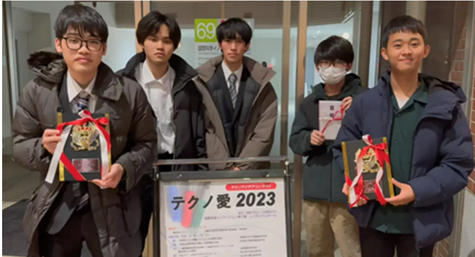 私たちは、テクノ愛2023という京都大学で開かれる、技術コンテストに出場した。本コンテストの応募件数は200近くあった中、私たちは、本選の9チームに選抜され参加させていただいた。私たちの発表した研究内容は、離岸流の予測を安価に、そして高精度で行う革新的なシステム開発である。本研究は今年7月から同じクラス(学科)の友達と取り組みをスタートした。テクノ愛2023では、本研究の途中経過について発表を行った。具体的な進捗として、システムを構成するセンサの開発・実験による測定精度向上の工夫や、画像処理による海の流れの可視化、そして離岸流の発生をビーチ利用客に伝えるためのアプリケーション開発の進捗について発表を行った。離岸流という沖縄だけでなく世界的な問題を解決しようとする姿勢や、その解決法について審査員からはお褒めの言葉をいただき私たちはグランプリ(優勝と同等)を獲得することができた。また、他校参加者とも様々な会話を楽しみ、私たちの分野外でどのような技術研究をしているのかを学ぶことができた。特に、食料廃棄されるものを燃料としたロケット開発を行う高校生との会話ではとても感心した。本コンテストを通じて私たちの取り組んでいる研究内容が改めて社会が必要を感じていること、また他校との交流から異分野との融合の可能性について深く考えさせられ、今後の研究ではそれらを視野に入れ行っていこうと決意させられた。
