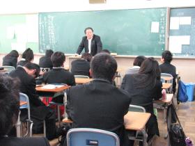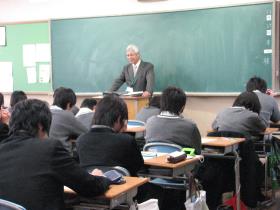 11月25日(木)の5限「総合」6限LHRの2時間に渡って、「キャリア教育」の一環として同窓生のOB,OGの講演を通して、「仕事とは」、「仕事を するということ」(仕事を通しての自己実現、その苦労や喜び、仕事選び等を含む)について学習すことを目的とした、48期生学年企画を実施しました。当日 は同窓会の協力を頂き、1~38期9名のOB,OGの方が講師となって、めいめいが2クラスでお話しいだくという形をとりました。社会の波で揉まれた先輩 方の話はさすがに示唆に富んでおり、普段はなかなか聞けない苦労話や会社経営の話、高校生時分のことや夢の実現、自分のモットー等、話題も豊富であっとい う間の2時間でした。