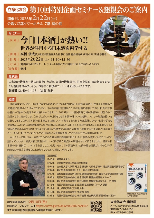 保護中: 立命化友会 第5回総会・記念講演会・懇親会の開催報告(2025年6月29日)