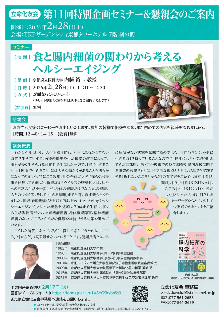 • 11:10 講演「食と腸内細菌の関わりから考えるヘルシーエイジング」