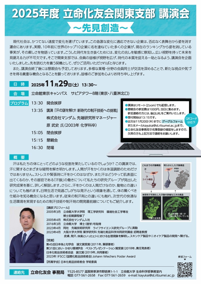 • 13:35 講演「汗の謎を解け!新時代の制汗技術への挑戦」