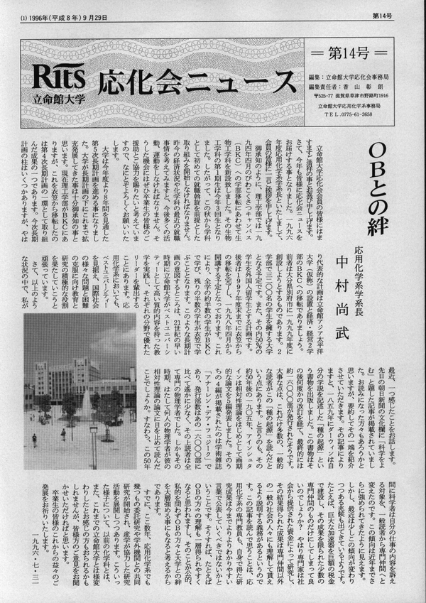 応化会ニュース第14号(1996年9月29日発行)