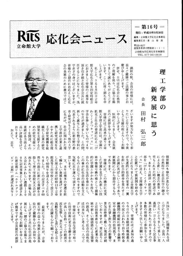 応化会ニュース第16号(1998年9月30日発行)