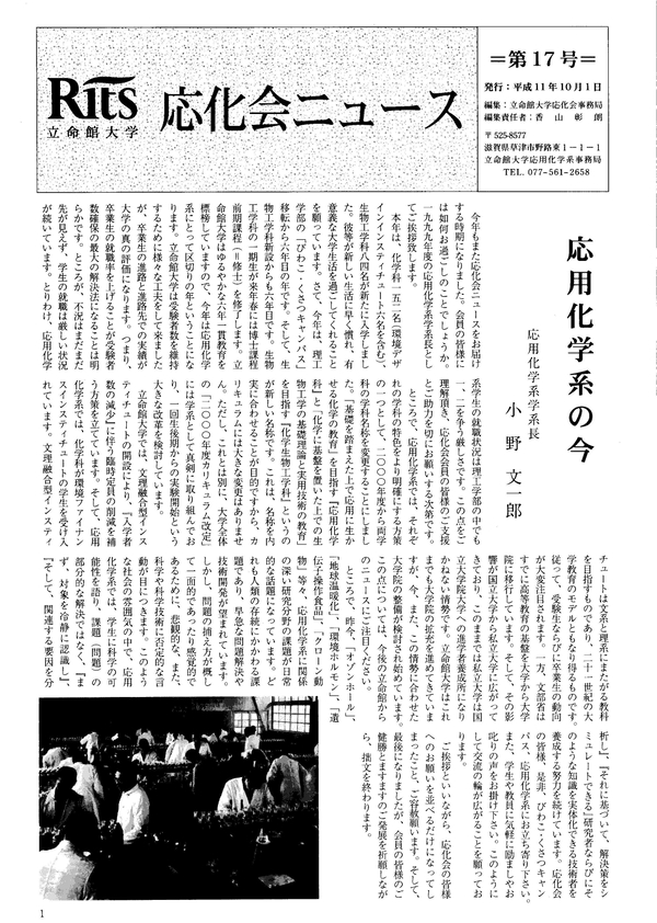 応化会ニュース第17号(1999年10月1日発行)