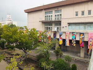 体育館での、文化祭恒例の垂れ幕です。各クラス本当に上手く出来ていました。