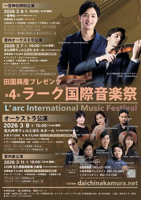お知らせ トップページお知らせ卒業生出演「第4回ラーク国際音楽祭」のお知らせ お知らせ 2026年2月16日 卒業生出演「第4回ラーク国際音楽祭」のお知らせ 本校音楽科卒業生の丸田隼輝様が指揮者としてご出演されます。 皆様お誘い合わせの上、ぜひお出掛けください♪ お知らせ