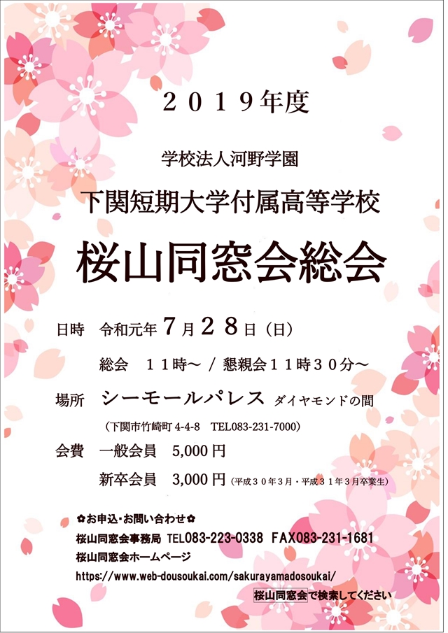 さて、今年度『桜山同窓会総会』を下記のとおり開催しますので、ご案内申し上げます。