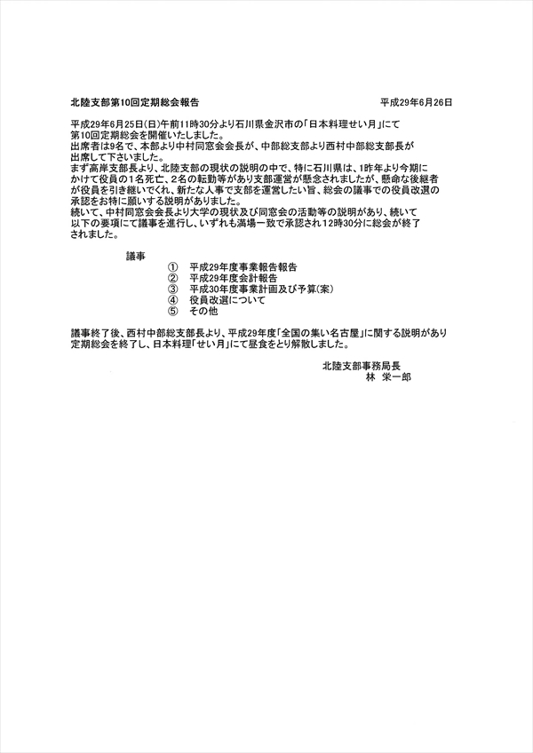 第10回北陸支部定期総会を下記要領にて開催いたします。