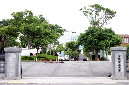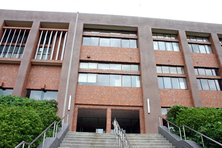 | (1)正面玄関 | (2)新体育館 | (3)管理・研究棟A |