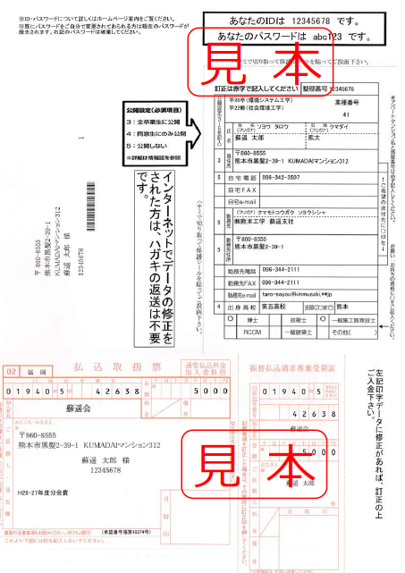 蘇遙会会員名簿27号は、平成26-27年度蘇遙会会費(5,000円)をお支払いいただいた方へ送付いたしております。会費は社会環境工学科在学生の活動支援と蘇遙会の運営に充てております。蘇遙会の活動にご賛同いただき、会費の納入をお願いいたします。
