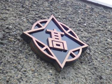 本校の正面玄関には、校章が掲げてあります。以前より同窓生のみなさんから、「錆びているようだが…。」とのご意見をいただいておりました。先月行われた役員総会後、参与の山口さんと監事の正木さんが相談して、正木さんがクリーニングしてくださいました。本業の技術を駆使し、見違えるようにきれいにしてくださいました。母校においでくださるときには、ぜひご覧になってください。