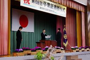 3月1日、第68回卒業証書授与式が行われました。前日は雷と豪雨、夜には雪まで舞う荒天だったものの、式当日はすっかり天気も回復し、気持ちのいい卒業式日和となりました。2月26日付け中日新聞東三河版でも紹介されましたが、林業科で調整した桜の花が会場を彩るなか、卒業生51名(普通科27名、林業科24名)に卒業証書が授与されました。同窓会からは、横山理事長が設楽町長として祝辞を述べられ、伊藤、小川、平松副理事長も参列しました。卒業生からの感謝の合唱も行われ、厳粛ななかにも卒業生の想いの込められた感動的な式になりました。なお、式の様子は3月2日付中日新聞東三河版でも紹介していただきました。