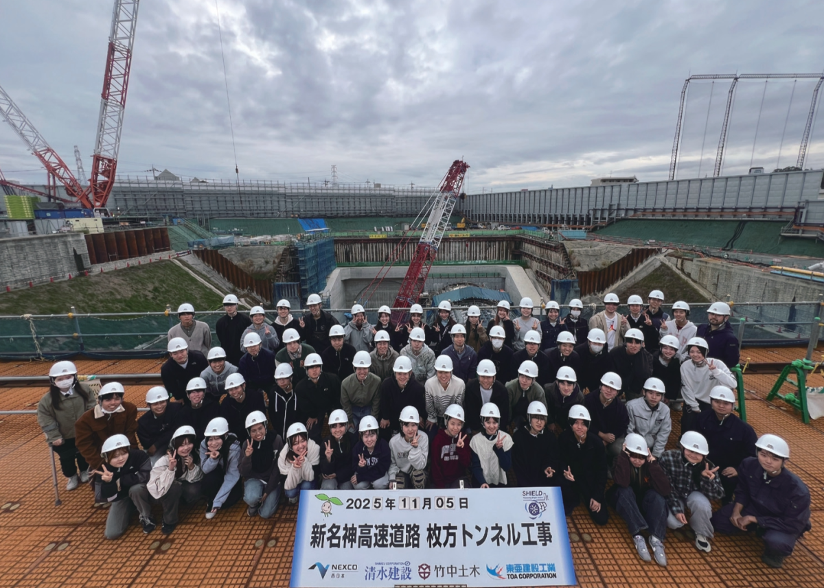 岡山大学都市環境創成コースの受講生の皆様(新名神高速道路 枚方トンネル工事の現場見学にて)