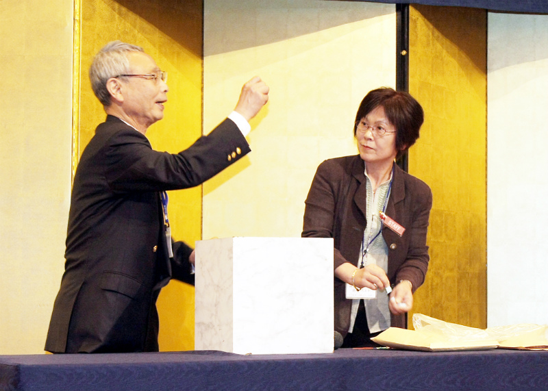雨天のため、開催を10分繰り下げ12時10分より同窓会総会を開催しました。開催の辞(国枝副会長)、黙祷、原会長挨拶、井上校長の挨拶と原口前会長への感謝状贈呈の後、会務報告を満場一致で承認を頂き、同窓会新規役員の紹介等粛々と進行して12時30分に総会は終了しました。