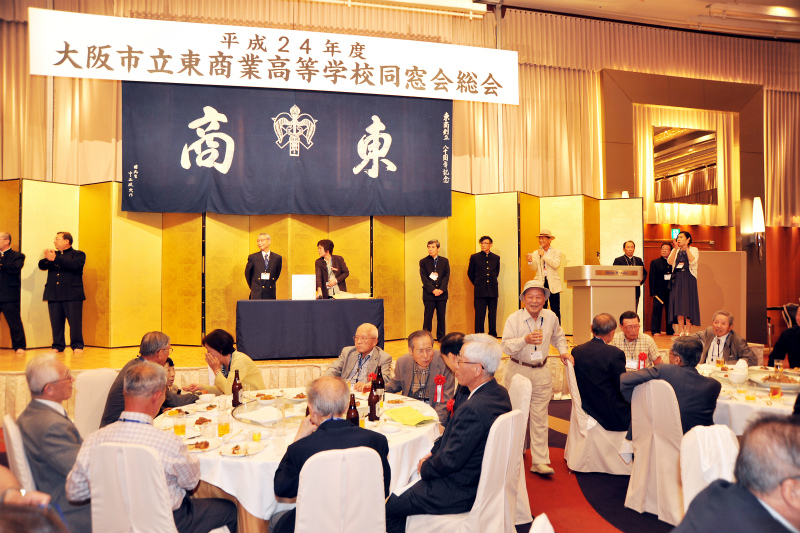 平成24年7月1日(日)大阪駅前の立地の良さと人気の高いヒルトン大阪にて、恩師34名、OB197名、新14期55名、新24期25名、新34期50名、計371名の多数の出席を得て開催させていただきました。