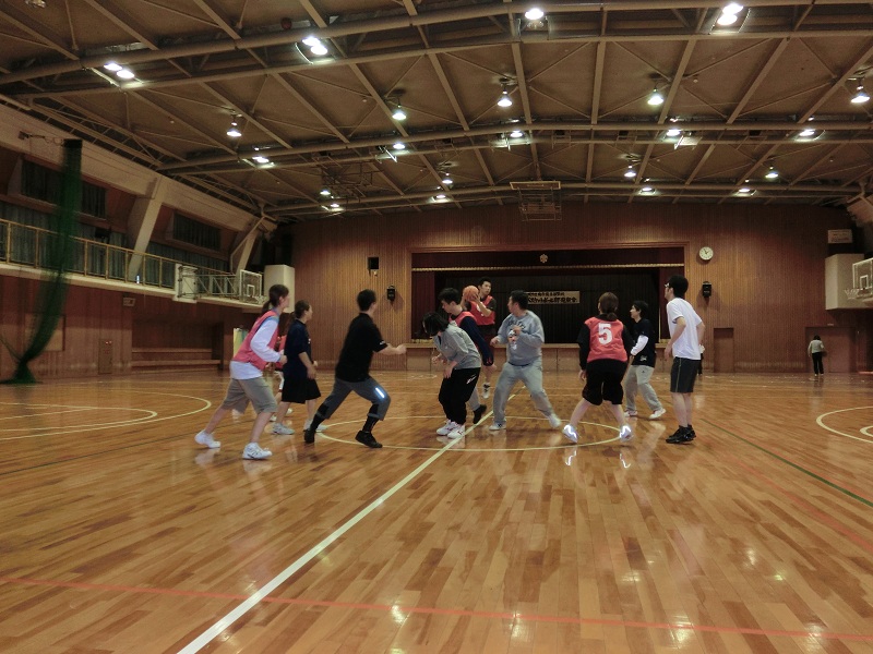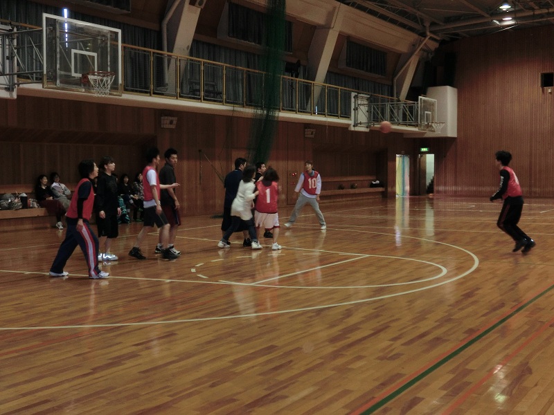 さあ、夕方に予定される懇親会までの時間、思い出の母校では最後のバスケットボール遊びの始まりです。