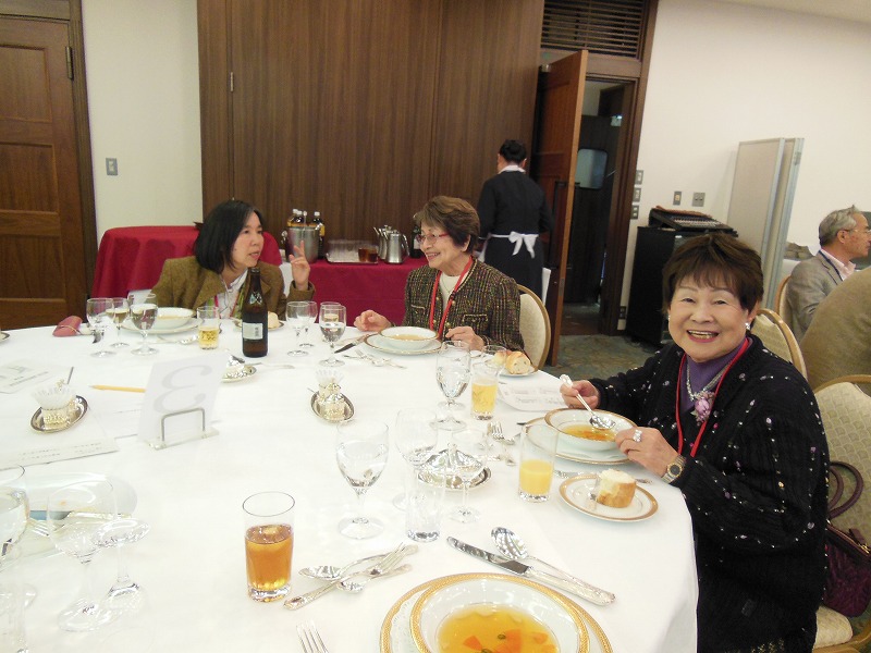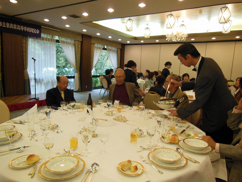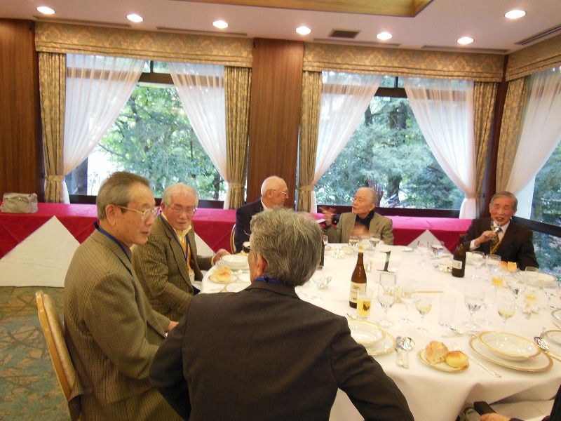 秋の一日、今年も日比谷公園内「松本楼」にて東京支部同窓会が行われました。昨年は他の用があり、参加することができず、今年は同じ日に大阪で同期会が行われたため、悩んだ末の参加でした。東京に出ることはあまりなく、やはり人に道を聞きながら、やっと日比谷公園に到着。公園では賑やかに秋の行事が行なわれており、「松本楼」の受付に立った時笑顔の幹事の方に迎えられ、緊張も取れホッとしたのを覚えています。先輩、後輩の皆様と同じ高校に通っていたというだけで、楽しく会話できる不思議さを感じながら、時間をたつのも忘れ、ちょっと難しい漢字ゲームを楽しみ最後に校歌を皆で歌い(歌えるのが不思議・・・)皆さん揃っての記念撮影。お世話してくださった幹事の方に感謝しつつ会場を後にしました。横浜に暮らして39年。東商での3年間の大切さを感じた一日でした。初めて参加して